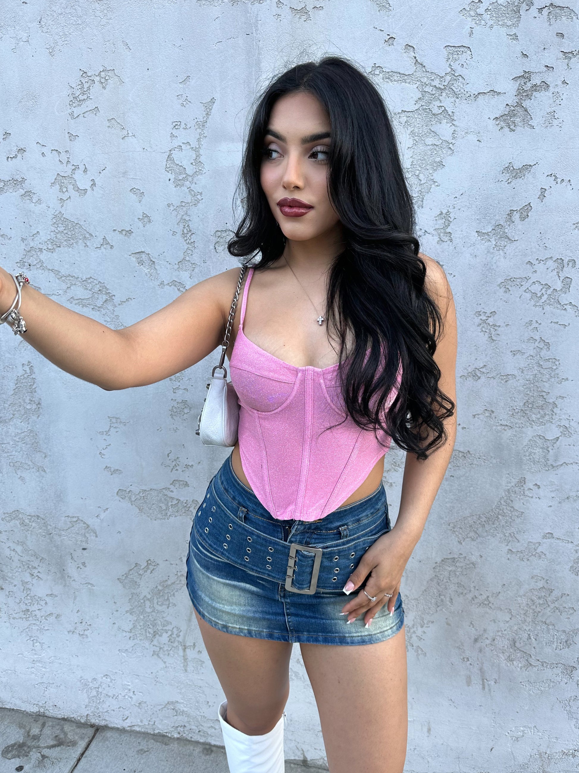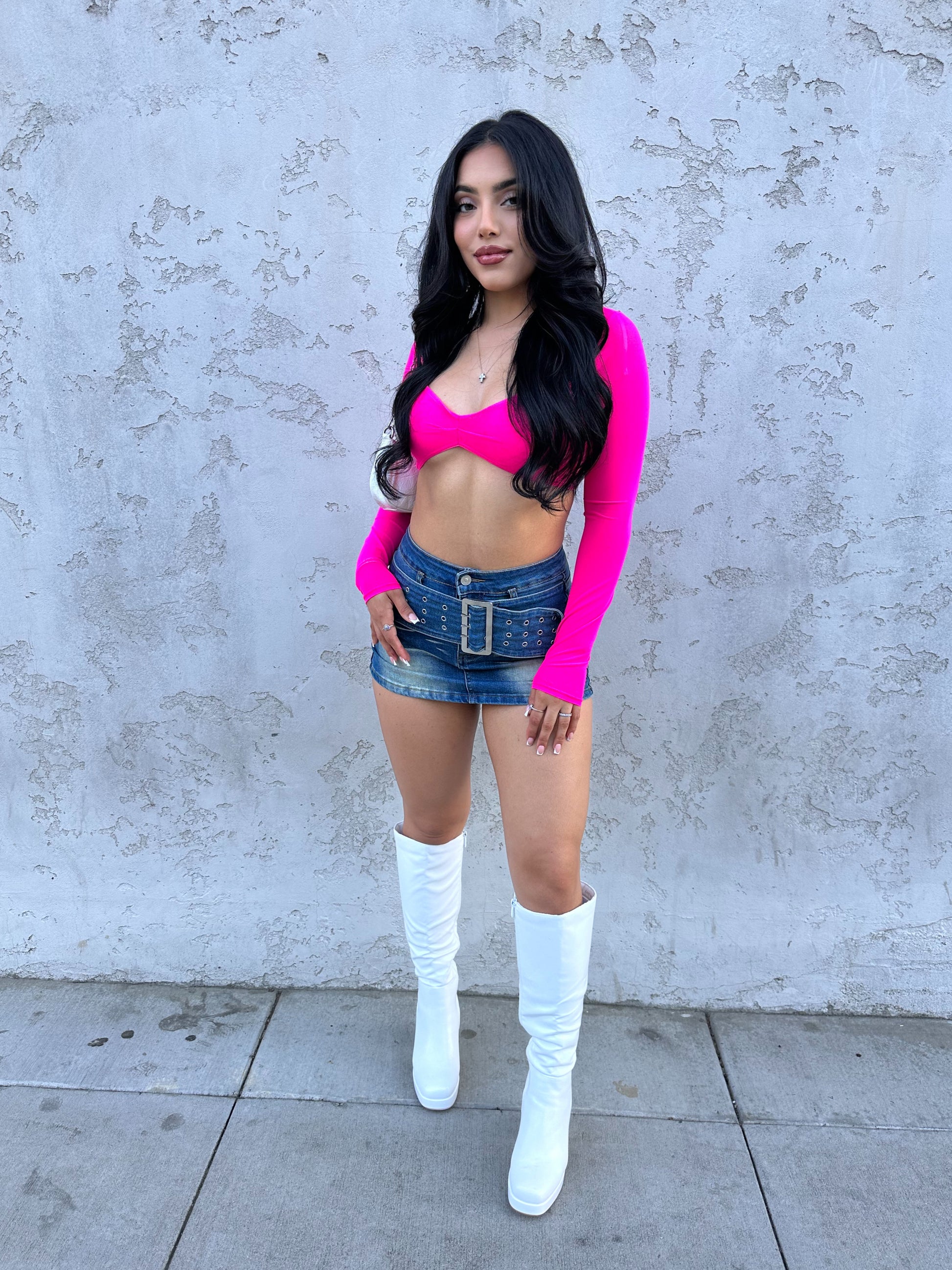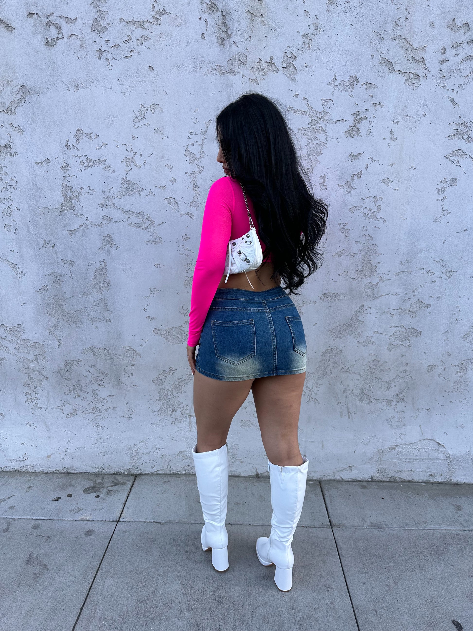Karolina Buckle Stretchy Denim Skirt (Light Denim)